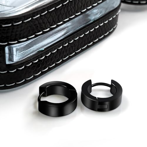 • CLIP ON EARRINGS FOR MEN: Titanium mens black earrings hoops, which a Nickel-free, Lead-free material, wear comfortable and hypoallergenic