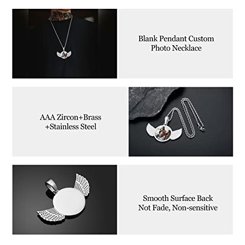 YIMERAIRE Blank Custom Picture Necklace Memorial Angel Wing Photo Pendant Iced Out Trays Necklace with Rope Chain for Women and Men 4