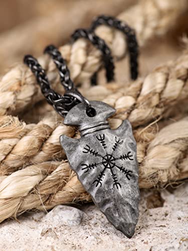 • VIKING PROTECTION TALISMAN: This ancient Viking necklace features a arrrowhead pendant with Helm of Awe, one of the most mysterious and powerful symbols in Norse mythology, carved on the front side