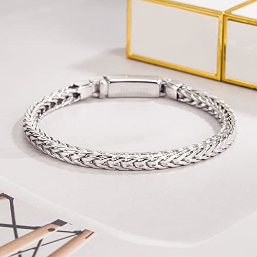 More information about Men Sterling Silver Byzantine Bracelet 4MM 7 "7.5" 8 "8.5" 9 "Solid 925 Silver Square Chopin Chain Franco Link Bangle Woman Fashion Cuff Jewelry Gift