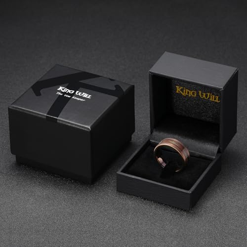 King Will 8mm Mens Tungsten Wedding Band Gorgeous Golden/Silver/Brown Flat Pipe Cut Carbide Ring Yellow/White/Mocha Green Sand Inlay Men's Engagement Ring Matte Brushed Finish Comfort Fit Size 7-14 6