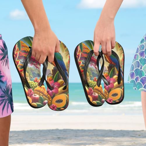 HOT ! Burbuja Tropical Fruits Flowers Parrot Flip Flops for Women Men, Soft Thong Sandals Rubber Slippers for Pool Beach Essentials