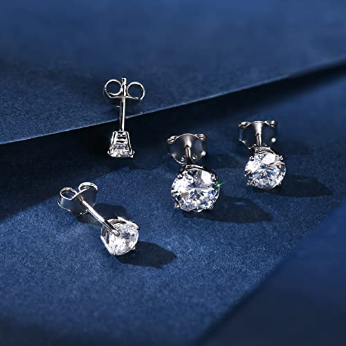 AllenCOCO Sterling Silver Stud Earrings for Women and Men, 18K White Gold-Plated, 5A+ CZ Cubic Zirconia, Hypoallergenic Non Tarnish Jewelry Gift for Sensitive Ears 6