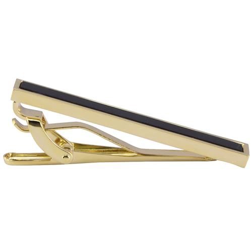 14K Gold Plated/Silver Mens Tie Clip with Black Agate In Gift Case Golden Tone 2 Inch Men's Tie Pin Bar for Regular Necktie Daily Business Anniversary Wedding Occasions 6
