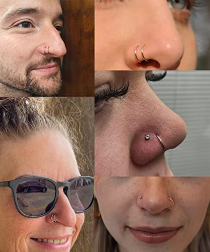 • STYLE DESCRIPTION: This Nose Rings Includes 12PCS Nose Studs and 12PCS Nose Hoops. The Nose Studs are Made of AAA+Cubic Zirconia, Which are Very Shiny and Have a Good Glossiness.The Nose Hoops Comes in 2Pairs Double Nose Hoops, 1pair Open Nose Hoops, and 3Pairs Single Nose Hoops.