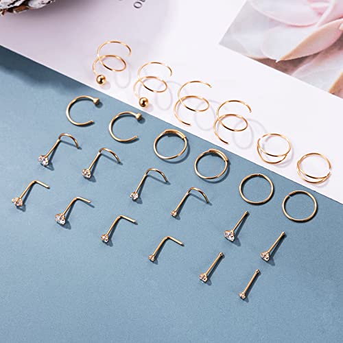 24PCS 22G 316L Stainless Steel Nose Rings Hoop for Women Men Nose Studs CZ Cartilage Helix Tragus Piercing Jewelry 5