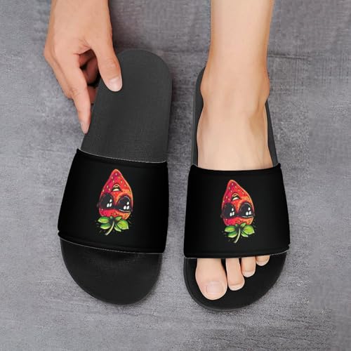 HOT ! Cute Strawberry with Glasses Non Slip Slides Sandals for Women Men Quick Drying Shower Shoes for Bathroom Pool Beach