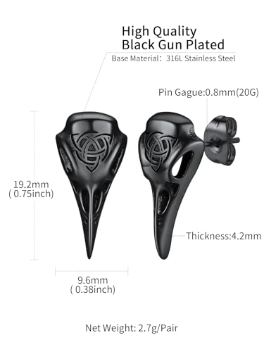 HOT ! ChainsHouse Viking Earrings for Men, Raven Skull/Celtic Cross Ear Studs, Stainless Steel/Black/Gold Plated Punk Gothic Earrings, Lightweight Hypoallergenic Stud Jewelry with Gift Box