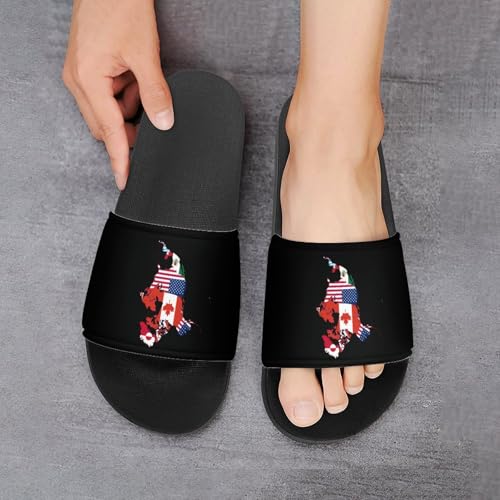 Flag Map of North America Non Slip Slides Sandals for Women Men Quick Drying Shower Shoes for Bathroom Pool Beach 5