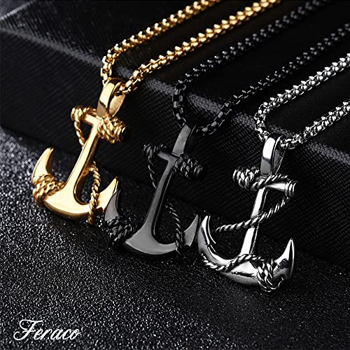 HOT ! Feraco Anchor Necklace for Men Vintage Navy Nautical Pirate Pendant Stainless Steel Anchor Chain Necklace, 21.6 inch