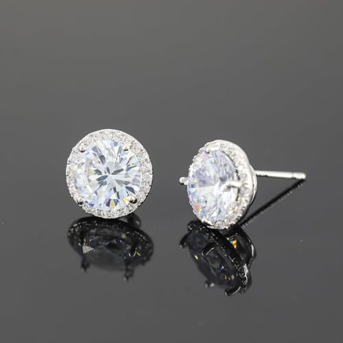 CZ Halo Stud Earring Simulated Diamond Cubic Zirconia Hypoallergenic 925 Silver Post for Women Men 4
