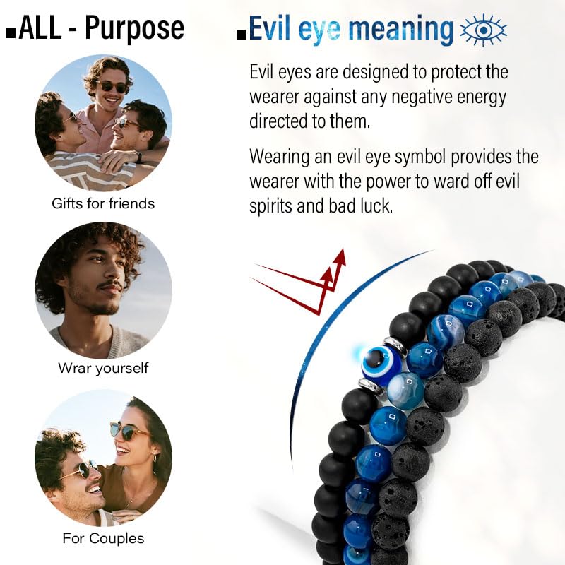 • Good for daily: Elegant Evil Eye design, more choices for your daily wear. Different colors suitable for any occasion. Cute, business, leisure, simple&classic style bead bracelet set for men