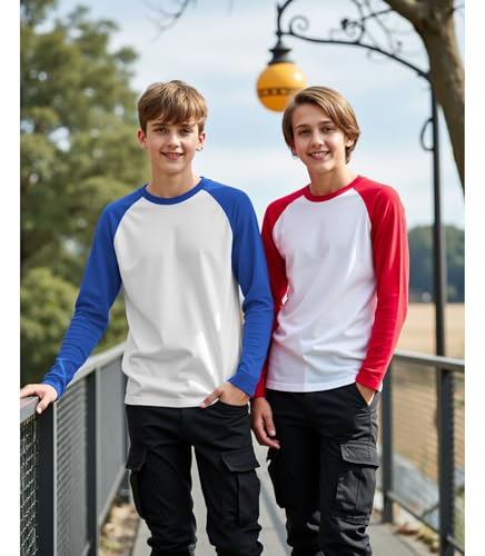 Boys Long Sleeve T Shirts Cotton Blend Crewneck Tshirt Baseball Tee Raglan Jersey Color Block Top 6