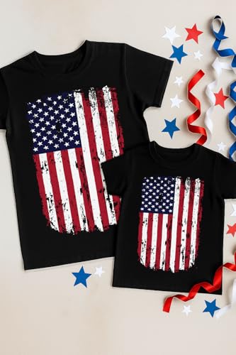 HOT ! Tstars American Flag 4th of July Dad and Son Matching Shirts | Daddy & Me Patriotic Memorial Day USA Tshirt Set