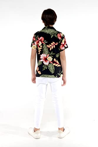Matching Hawaiian Luau Sibling Boy Girl Butterfly Dress Aloha Shirt in Rafelsia Black 4