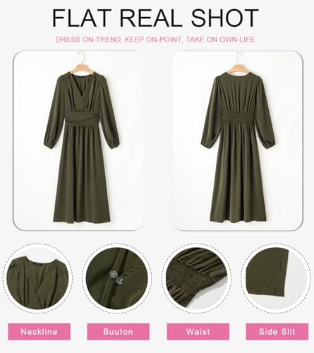 Dokotoo Womens Wrap V-Neck Empire Waist Dress Lantern Sleeve Ruched Side Slit Elegant Maxi Dress 5