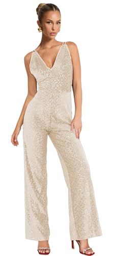 HOT ! Zoghoo Sequin Formal Jumpsuits for Women Sparkly Prom Dresses Long Wide Leg Pants V Neck Rompers