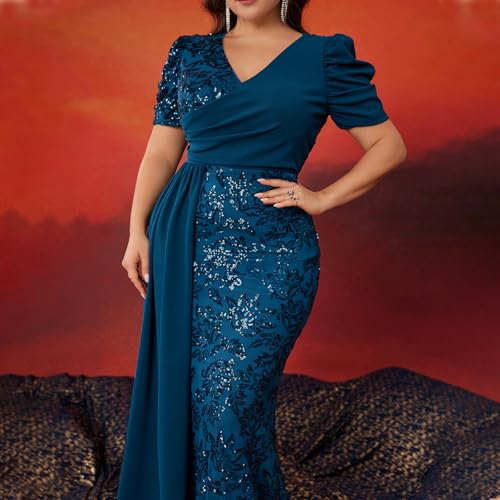 More information about Elegant Women’s Formal Dress Wedding Guest Puff Sleeve Mermaid Ball Gowns Court Train Plus Size Sequin Dresses Long
