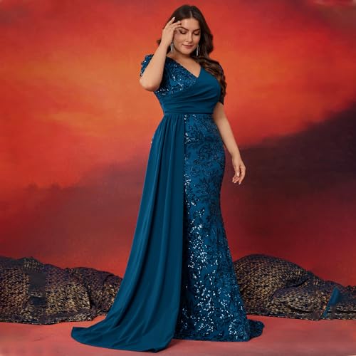 • Size: S=US(4),M=US(6),L=US(8-10),0XL=US(12), 1XL=US(14), 2XL=US(16), 3XL=US(18), 4XL=US(20). It is plus size sequin dresses for curvy women, 2xl sequin gala dress, gala dresses for women formal. The stitching and material are both high quality.