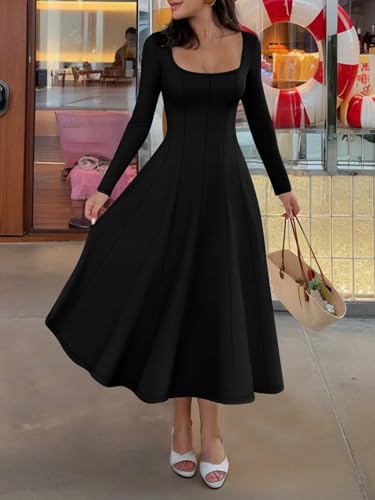 • Features: This midi dress features a long sleeve, square neck, high waist, swing a line, pleated design, solid color, two side pockets, flowy dresses for women, cocktail dress for women, dresses for women 2025 elegant classy, fit and flare dress for women