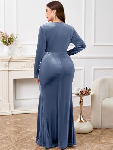 ZOMVA Plus Size Velvet Wrap Dress Long Sleeve V Neck Mermaid Maxi Formal Evening Gowns for Wedding Guest Cocktail Party 6