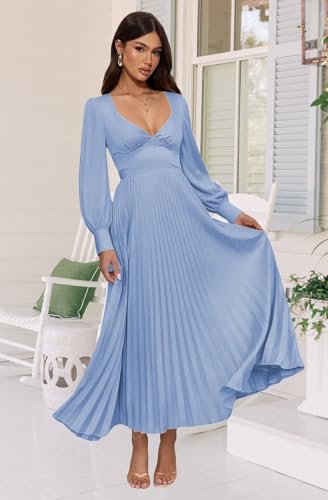 More information about Pleated Satin Bridesmaid Dress V-Neck Long Sleeve Maxi Dresses for Women QA258