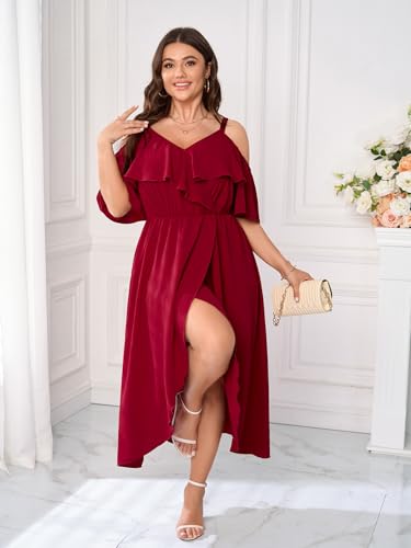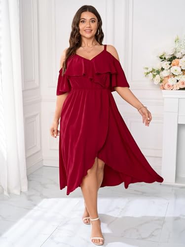 Womens Plus Size Cold Shoulder Dress Short Sleeve Ruffle Summer Sundress High Low Flowy Maxi Long Dresses 4