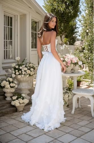 • Feature: V neck design,side split,laces up backless floral printed sleeveless strapless formal evening party,floor length maid of honor gown,chiffon Ruffles pageant dress for women