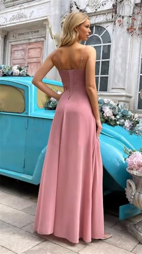More information about Chiffon Bridesmaid Dresses for Women with Spaghetti Straps 2025 A Line Formal Evening Gowns with Slit
