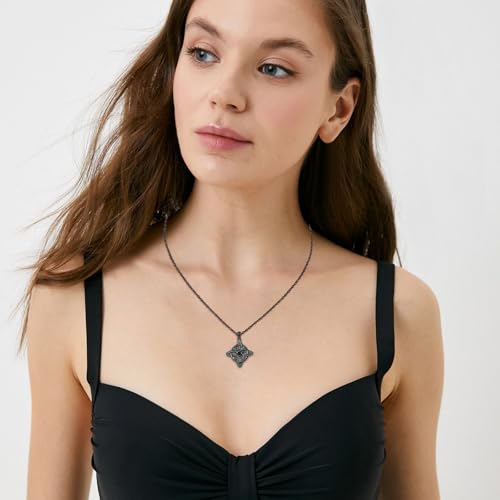 • Turquoise Witches Knot Necklace Material: Black witchy necklace for women is made of 925 sterling silver, ensuring its glossiness and durability, hypoallergenic and safe for sensitive skin, inlaid with turquoise is sparkling. The intricate detailing and sleek finish make them a standout accessory for any occasion