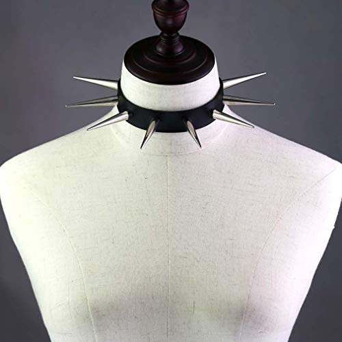More information about FM FM42 Unisex Simulated Leather PU Punk Rock Gothic Black-tone/Silver-tone Very Long 5.5cm(2.16") Spikes Rivets Choker Collar Necklace (16 Colors)