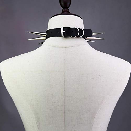 FM FM42 Unisex Simulated Leather PU Punk Rock Gothic Black-tone/Silver-tone Very Long 5.5cm(2.16") Spikes Rivets Choker Collar Necklace (16 Colors) 4