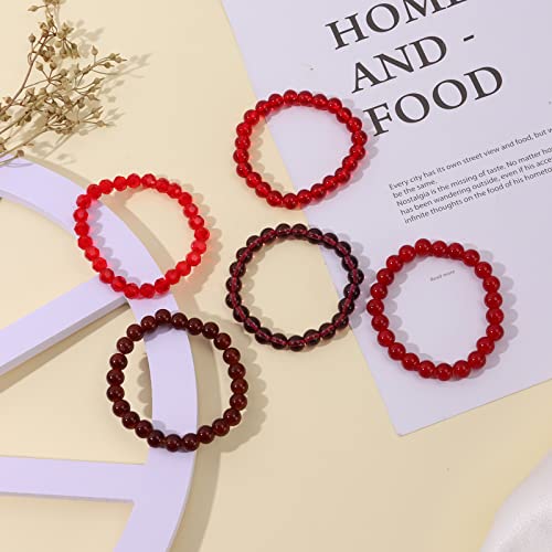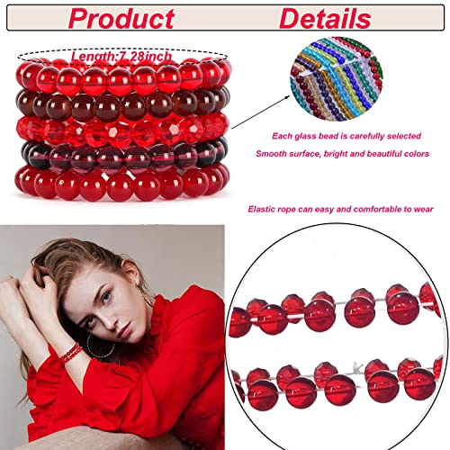 CASDAN 5Pcs 8mm Beaded Stretch Bracelet Handmade Glass Bracelet for Women Mens Multicolor Crystal Round Beads Bracelet Elastic Bead Bracelets Jewelry 6