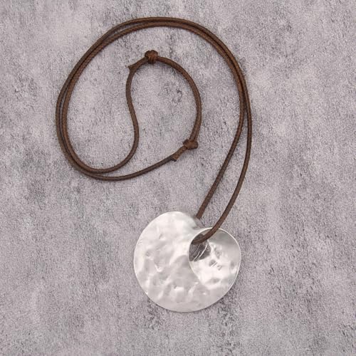 JAOYU Bohemian Necklaces for Women Leather Necklace Wood Pendant Choker Long Brown Necklace Chunky Circle Boho Hippie Jewelry 5