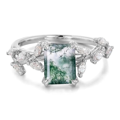 • 💖【Material& Size】:Central gemstone:2CT Natural Emerald-Cut moss agate;Side stone:5A Zircon/Moissanite/Lab Diamond/Natural Diamond;The Ring is made of 10K/14K/18K solid gold or sterling silver, available in white/rose/yellow gold plated,Hypoallergenic,Lead-free & Nickel-free,it will not turn black or green and safe for sensitive skin.