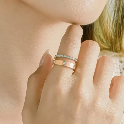 Love Gold Rings for Women 2Piece Unisex 18K Rose Plated Stainless Steel Cubic Zirconia Friendship Wedding Birthday Anniversary Promise ring 6
