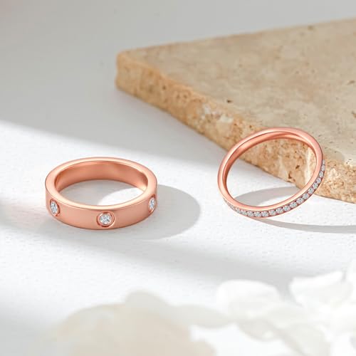 Love Gold Rings for Women 2Piece Unisex 18K Rose Plated Stainless Steel Cubic Zirconia Friendship Wedding Birthday Anniversary Promise ring 5