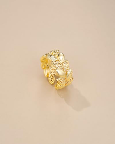 More information about Gold Chunky Floral FULLY ADJUSTABLE Open Statement Ring for Women by SNGIA, Summer Beach Handmade Adjustable Cluster Flower Band Ring, Minimalist Stackable Wedding Date Birthday Gift, Bold Exaggerated Irregular Wavy Trendy Ribbed Jewelry, Textured Patterned Fashion Accessories, Vintage Hammered CursiveThick Circular Nickle Free Gifts.