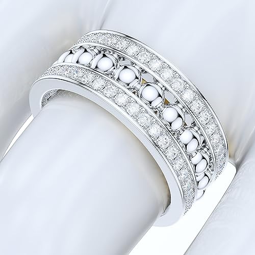 More information about THELANDA Sterling Silver 8mm Unisex Bubbles Balls Simulated Round Diamond or Genuine Moissanite Full Eternity Band Wedding Ring