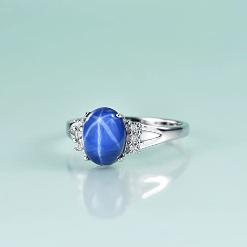 Gem's Beauty 7/9 mm | 0.28"/0.35" Lab Star Sapphire Rings Genuine 925 Sterling Silver Handmade Ring Birthstone Rings Engagement Rings(size 5-10) 5