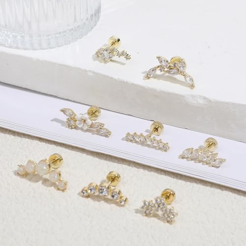 Yolev 8 PCS 16G Cartilage Earrings Helix Piercing Jewelry Back Earrings Helix Piercing Jewelry Opal Stud Set Flower Leaf Screw Back 7