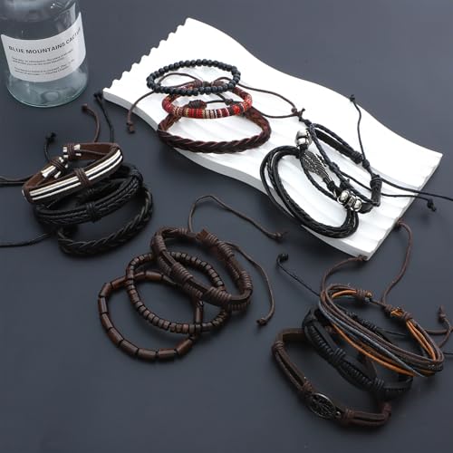• What you will get: This leather necklace bracelet set includes 3 pieces tribal necklaces and 14 pieces braided leather bracelets. Perfect for stacking or wearing alone, this brown black leather jewelry set offers a bold, rugged look for men who love 80s rock jewelry and edgy accessories