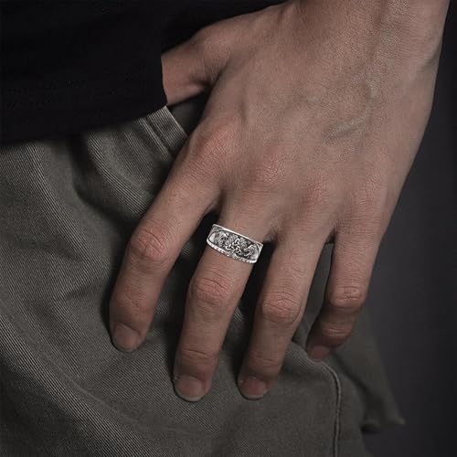 More information about Norse Viking Lion/Wolf/Star/Scorpion Bear Tree of Life Wolf/Thor's Hammer Viking Ring 925 Sterling Silver Ring with Runes Runic Norse Jewelry for Men Women Open Adjustable
