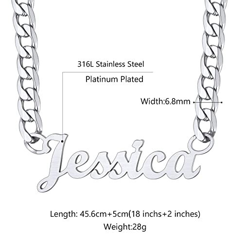 • [Material and Size]Custom name pendant of quality workmanship,sturdy 316L stainless steel- which is a hypoallergenic & skin-friendly material ,high polish finish make sure the color will last a long time and doesn’t fade.Cuban chain width:6mm(0.23”),adjustable chain length is 18"+2".