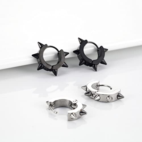 YUNXI 3 Pairs Punk Style Stainless Steel Spike Hoop Earrings Stud Earrings Set for Men Women, Statement Jewelry 4