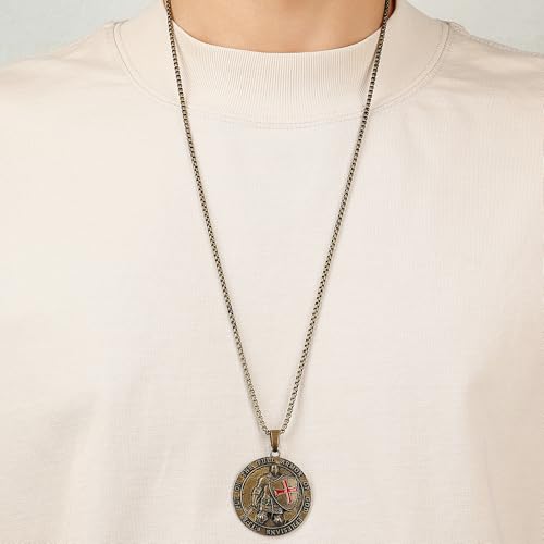 Knights Templar Red Cross Necklace for Men, Heavy Duty Alloy Armor of God Pendant, Ephesians 6:13-17 Scripture, Hidden Ring Design, 2.1 Inch Diameter, Medieval Badge Style 3