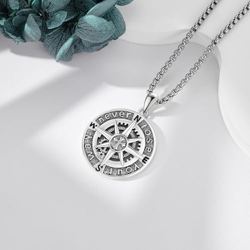 YAFEINI Compass Necklace 925 Sterling Silver Compass Pendant Necklace Graduation Jewelry for Men Father Husband 6