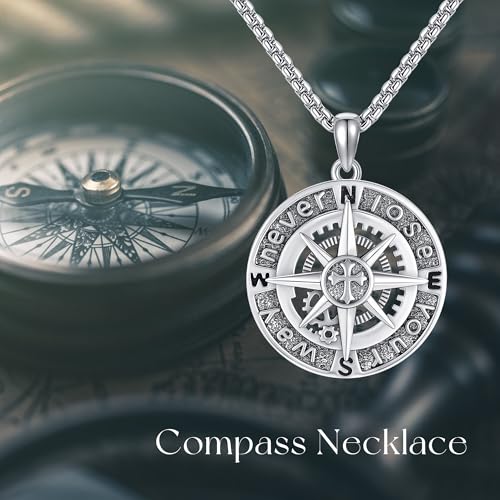 YAFEINI Compass Necklace 925 Sterling Silver Compass Pendant Necklace Graduation Jewelry for Men Father Husband 5