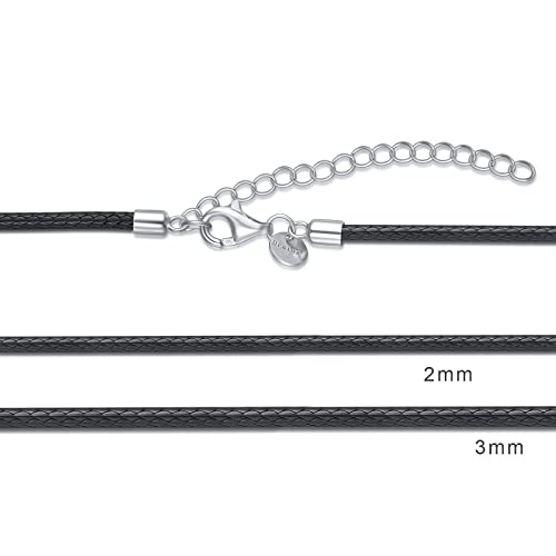 • MATERIAL OF LEATHER CORD CHAIN NECKLACE: 2mm leather cord chain is made of great-quality 925 sterling silver material and durable black braided wax rope chain. Nickel free, lead free and hypoallergenic.