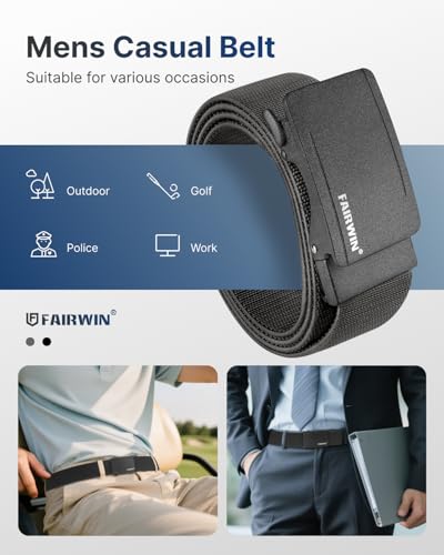 HOT ! FAIRWIN Men's Ratchet Belt - Premium Stretch Nylon Web Work Belt for Casual Jeans, Business Pants, Golf & Everyday Comfort